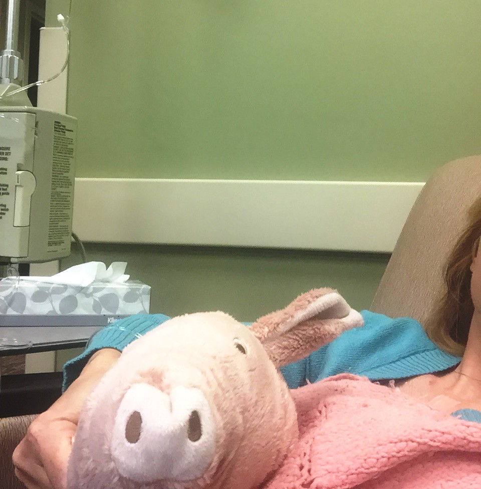 After receiving the first infusion of chemo on Monday, Sara wasn’t completely finished – she then wore a pump for the next 48 hours which (via her port) kept administering the chemo. Sleeping comfortably is a bit challenging, with the pump on one side and the colostomy bag on the other, but it was manageable. On Wednesday Sara went back to the oncology center to have the pump removed. As she had been suffering from a bit of nausea, the doctor gave her another dose of steroids, though a bit smaller than previously so that it wouldn’t keep her up all night. Given this little energy boost, she was even able to visit her horse Roxy and foal Star, which was very exciting! Sara discovered another side effect of chemo – sensitivity to eating/drinking anything cold – after starting to drink some ice water in a restaurant. Oops! Hopefully the sensitivity will diminish a bit between treatments. Now she gets a “break” from chemo, and the cycle starts again the following Monday (i.e. November 9).